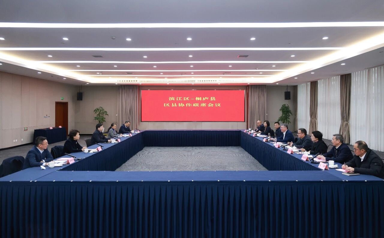 1月29日下午,濱江區—桐廬縣區縣協作聯席會召開,深入貫徹落實省市工作部署,進一步深化協作幫扶工作,推動兩地高質量發展。濱江區委書記鄭迪,桐廬縣委書記馮晶出席并講話。濱江區領導應敏揚、張瑋、陳宇、王理生,桐廬縣領導鐘永明、邵偉斌、周萍英、丁立燕、施建華、張蘇平、吳濤出席。